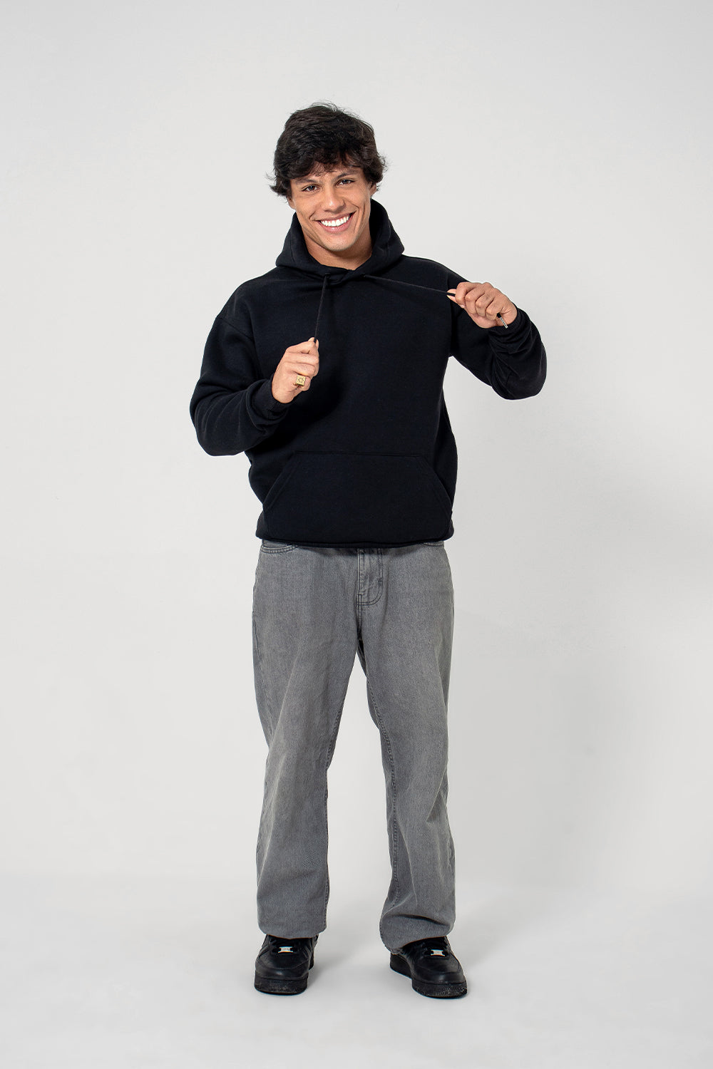 Moletom Canguru Streetwear 2 Cabos é confeccionado em moletom peluciado 2 cabos, com gramatura de 300 g/m², ideal para dias de frio moderado. O design inclui um capuz duplo forrado, com cordão roliço de algodão e ponteiras de ferro para ajuste e estilo. Conta com um prático bolso canguru na parte frontal e reforço de ombro a ombro para maior durabilidade. As barras e os punhos possuem 7 cm de ribana canelada 2×1 com elastano, garantindo um ajuste confortável